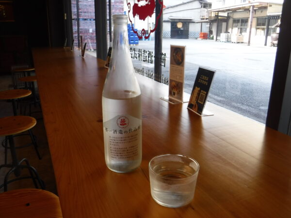 「笹一酒造の仕込水」と書かれた中瓶が、水を注ぎ入れるためのコップとともに渡された。