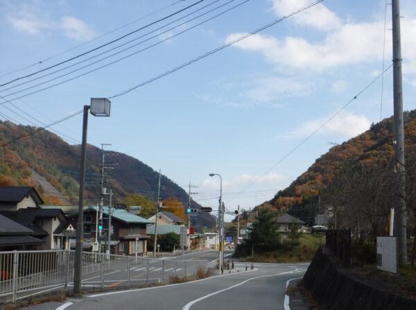 まずは「笹子駅入口」丁字路信号の横断歩道をわたる。
