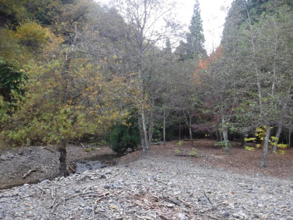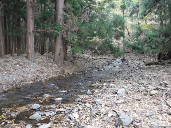惜しむらくは左岸側にはっきりとしたブルドーザー道がこしらえられてしまっていること。渓畔林が育つ環境とはほど遠い。いや、もし仮に生えてきたところで妨害樹木でしかない。なんて言うより先にシカたちのえさになるのが現実か。