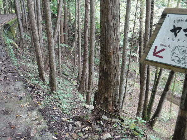 午後2時55分、ウエーダーに履き替えたところで堤体前に向かう。堤体前に向かう経路については「ヤマグルマ」の看板にしたがう。