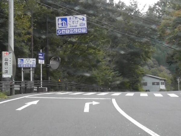 ヤマブキの丘(植えたヤマブキらしい。)を越え、山沢橋をわたって坂道を登ってゆくと、やがて「道の駅こすげ」の看板があらわれた。