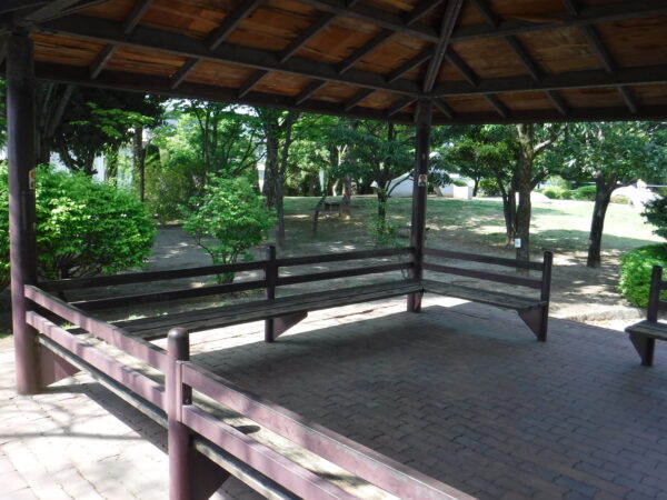 市役所前の公園。公園には東屋があり、座って過ごすことができる。なんとも平和な市役所前公共スペースである。