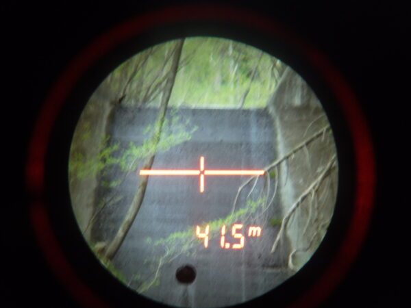 眼前、堤体前は沢登りでいうところの「函(はこ)」と呼ばれるような地形。声は函の断面だけを拡散せずに走っているという感じだ。